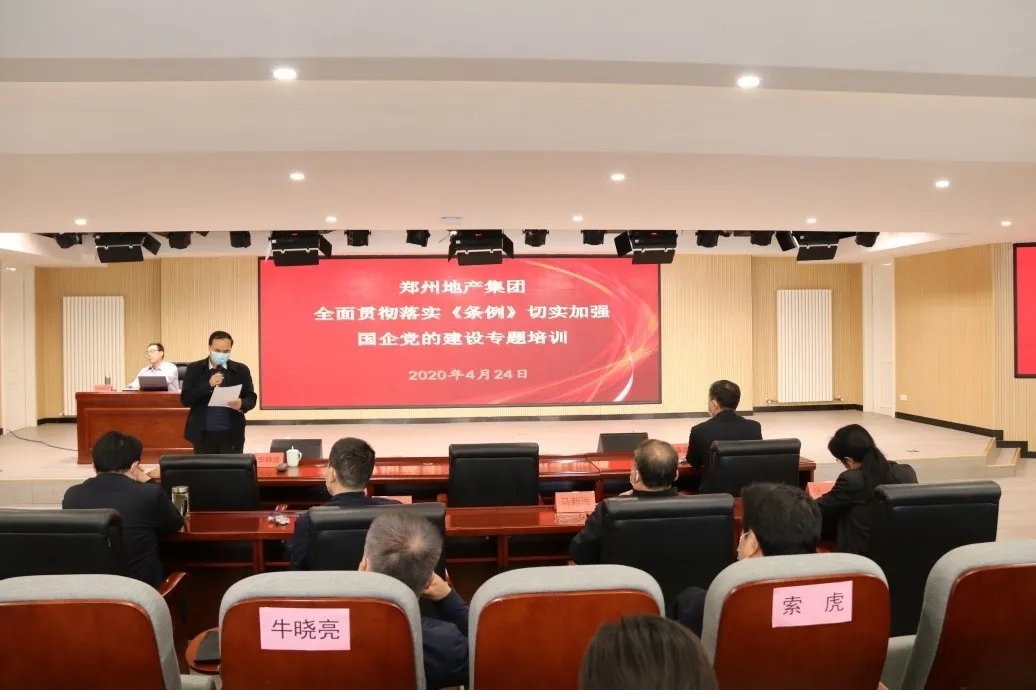 為貫徹落實新時代黨的建設總要求和黨的組織路線,堅持和加強黨對國有企業(yè)的全面領導,提高國有企業(yè)黨的建設質量,4月24日下午,鄭州地產(chǎn)集團黨委特邀中共河南省委黨校黨建教研部主任郭獻功教授,在集團301多功能廳舉辦了《全面貫徹落實<條例>切實加強國企黨的建設》專題培訓。會議由集團監(jiān)事會主席李靜波主持,集團總部全體黨員、各子公司董事長及各支部書記參加了培訓。