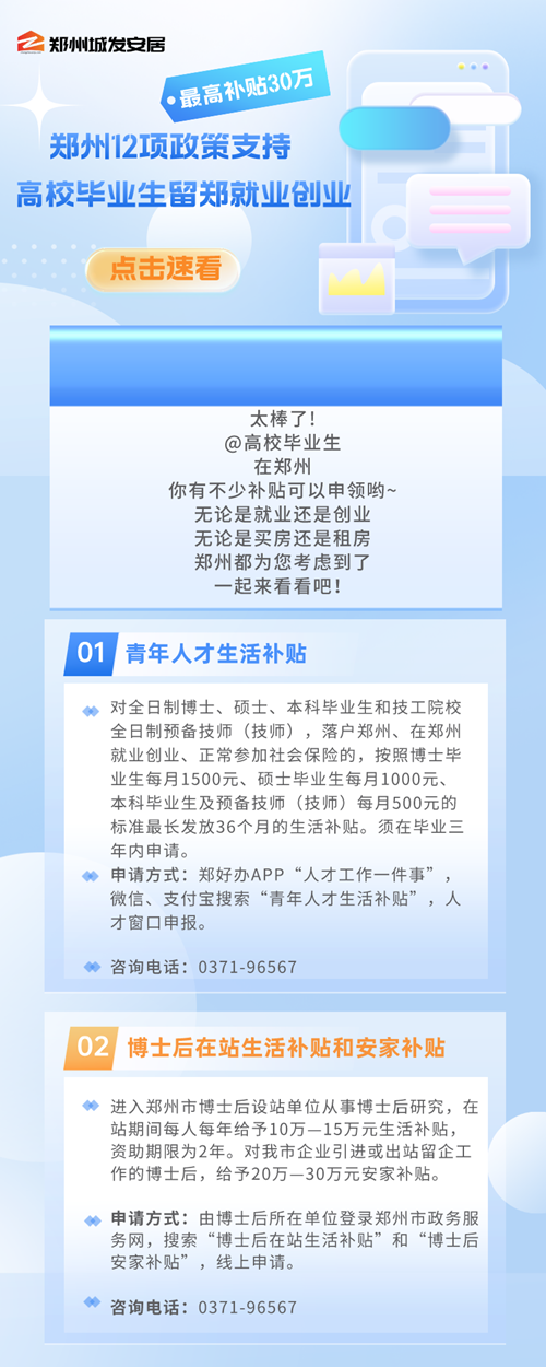 近年來(lái),鄭州市通過(guò)盤(pán)活存量房源用作人才公寓、發(fā)放購(gòu)房租房補(bǔ)貼等形式,多渠道解決人才階段性居住需求。比如,鄭州市創(chuàng)新實(shí)施人才補(bǔ)貼,除了人才公寓以外,符合條件的博士、碩士、學(xué)士學(xué)位畢業(yè)生,5年內(nèi)分別可享每月3000元、1500元、1000元房租補(bǔ)助,購(gòu)房給予10萬(wàn)元到30萬(wàn)元不等的一次性購(gòu)房補(bǔ)貼。