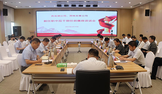 6月19日下午,西流湖公司、鄭地發(fā)展公司召開(kāi)新任中層干部任前廉政談話會(huì)。公司領(lǐng)導(dǎo)班子成員、中層正副職人員及新任職中層干部人員共計(jì)二十余人參加,會(huì)議由公司黨支部書記、董事長(zhǎng)、總經(jīng)理吉獻(xiàn)亮主持。會(huì)議要求新任中層干部要認(rèn)清定位、做好表率,要對(duì)下負(fù)責(zé)、嚴(yán)格管理,以強(qiáng)烈的事業(yè)心和主人翁姿態(tài),主動(dòng)扛大梁、挑重?fù)?dān)、負(fù)重責(zé)、做貢獻(xiàn);要敢于擔(dān)當(dāng)作為,勇于攻堅(jiān)克難,要以踏石留印、抓鐵有痕的勁頭理清思路、突出重點(diǎn)、轉(zhuǎn)變作風(fēng)、創(chuàng)新機(jī)制,以主動(dòng)擔(dān)當(dāng)、奮發(fā)有為的姿態(tài)扛起助力城市建設(shè)發(fā)展的大旗,為鄭州國(guó)家中心城市建設(shè)增光添彩。