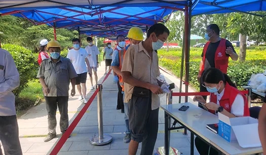 由于龍湖社區(qū)內(nèi)工地?cái)?shù)量多,人員流動(dòng)性大,檢測(cè)人群普遍年齡偏大,給檢測(cè)工作著實(shí)帶來(lái)一定難度。尤其是有一位工友,左腿受傷骨折,打著石膏拄著拐杖來(lái)做檢測(cè),他沒(méi)有拿身份證且隨行人員都不會(huì)熟練操作手機(jī)掃碼,但在志愿者的引導(dǎo)下,從帶領(lǐng)他走愛(ài)心通道、到協(xié)助錄入信息、幫助他們?nèi)私仄亮舸嬉约白罱K完成檢測(cè),志愿者認(rèn)真的工作態(tài)度得到了工友和社區(qū)工作者的高度贊揚(yáng)。檢測(cè)期間,志愿小隊(duì)統(tǒng)一按照社區(qū)的調(diào)度安排,各司其職,專人專崗,一切行動(dòng)聽(tīng)指揮,做到了各環(huán)節(jié)專人負(fù)責(zé)和快速反饋,整體檢測(cè)工作快速有序的進(jìn)行,僅在15日一天,社區(qū)就完成了4000余人次的檢測(cè)。來(lái)自龍湖社區(qū)的居民表示,第四次核酸檢測(cè)相較于前幾次效率明顯提高且秩序良好,從最初的半個(gè)小時(shí)以上到現(xiàn)在的幾分鐘,這不僅是效率質(zhì)變,更是廣大一線工作人員的付出心血,大家都非常感謝他們。